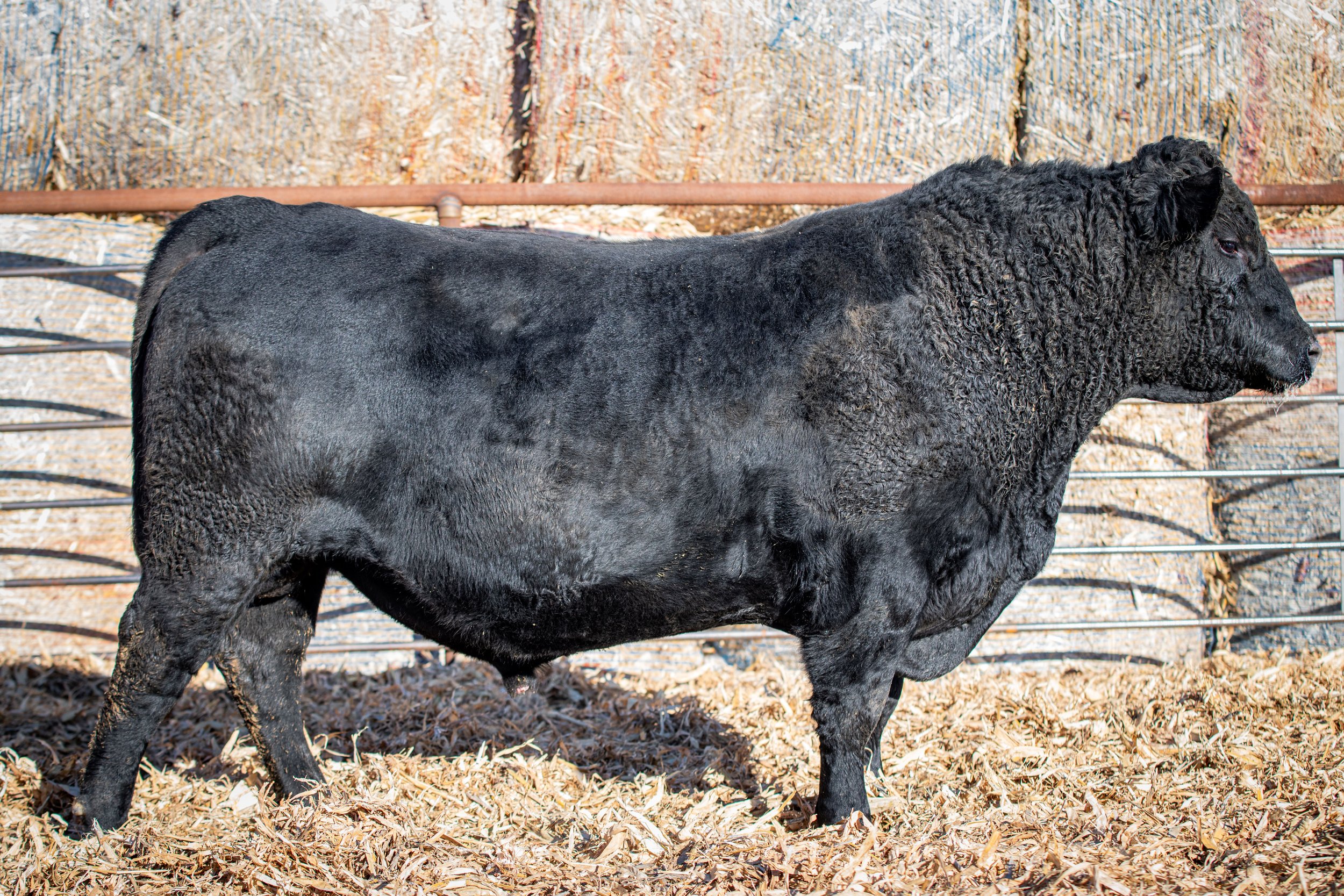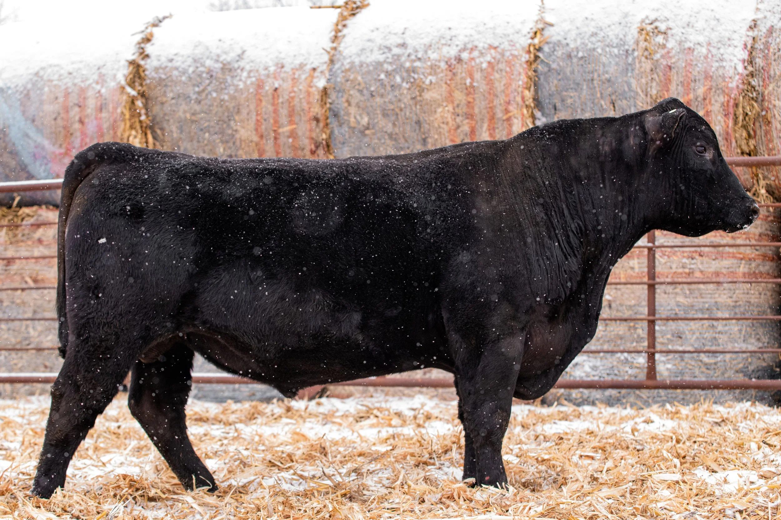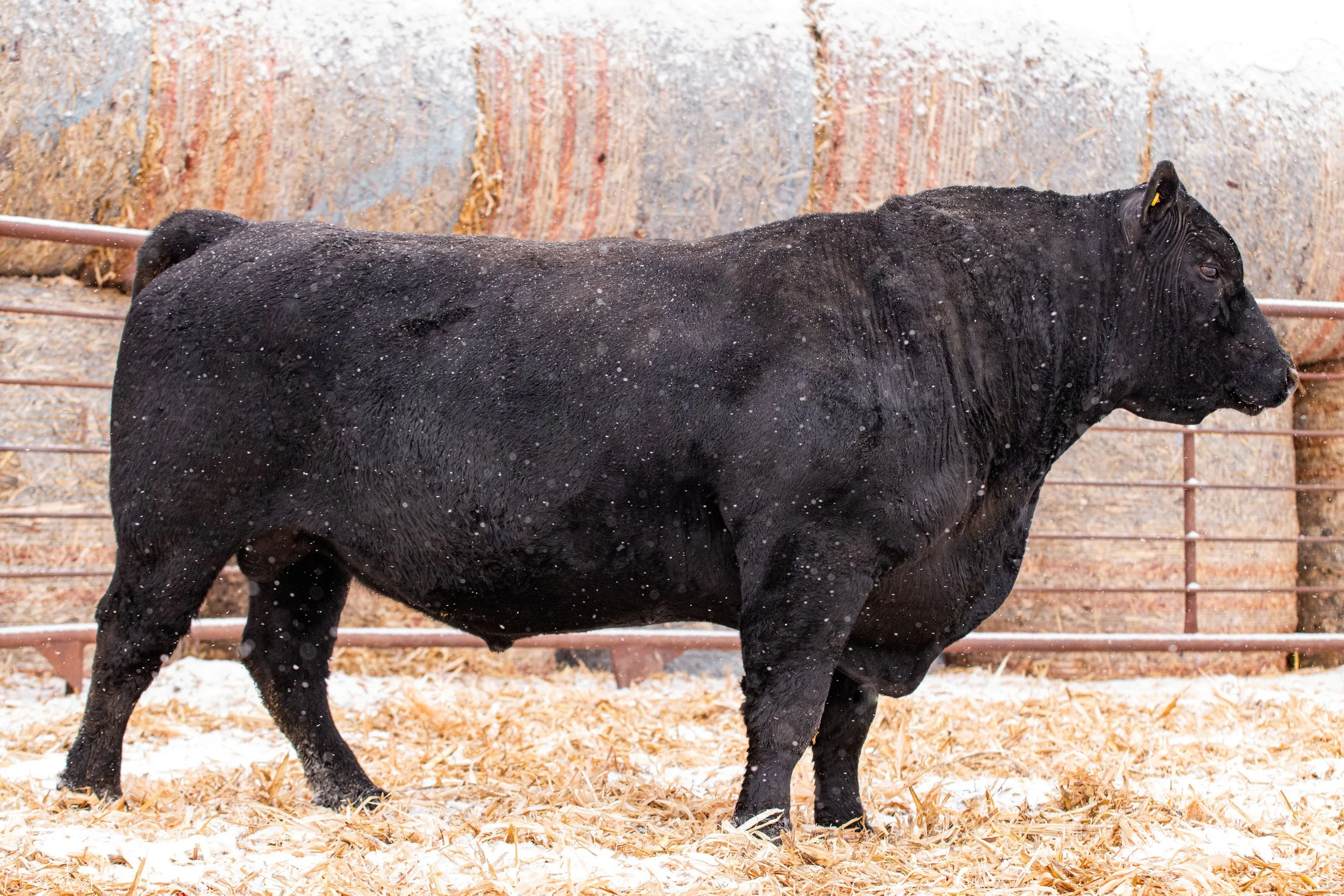 Jet Black 2183 is one of the most impressive bulls you will see in a real ranch environment, where he hasn’t been babied. He is an athletic, deep bodied, good footed bull that stays in the trees and feels way more at home in the pasture than he does in the working pen. His calves come easy and are athletic with great eye appeal. We selected him from the 2023 sale at Ridl Angus in ND. We love the genetics in this bull including Black Granite, New Day, and Bando. It is a great combination.